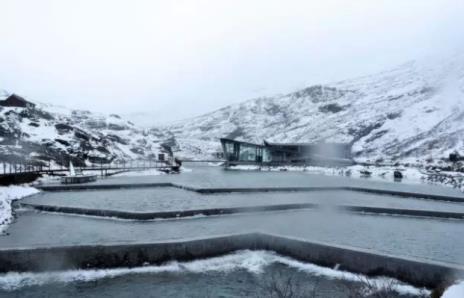 蓄水池错落排列,水流从多个方位流出,呈现丰富的视觉效果。