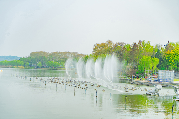 具有水泉的特性,也具有旱泉的特征,是把两者结合起来的综合性喷泉。